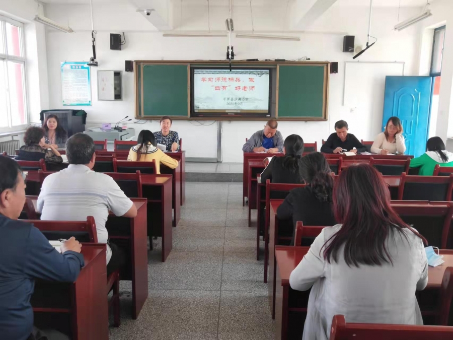 根据教体局文件《关于做好2021年教师节庆祝活动的通知》的要求,各校要加大典型选树,大力弘扬尊师重教传统,全方位,立体式宣传教师立德树人先进事迹,弘扬主旋律,讲好“四有”好老师的故事。于是我校在9月15日下午组织全体教职工在会议室开展“学习师德标兵争做四有好老师”为主题师德学习活动。宣传学习我校师德典型谢永霞老师的事迹。