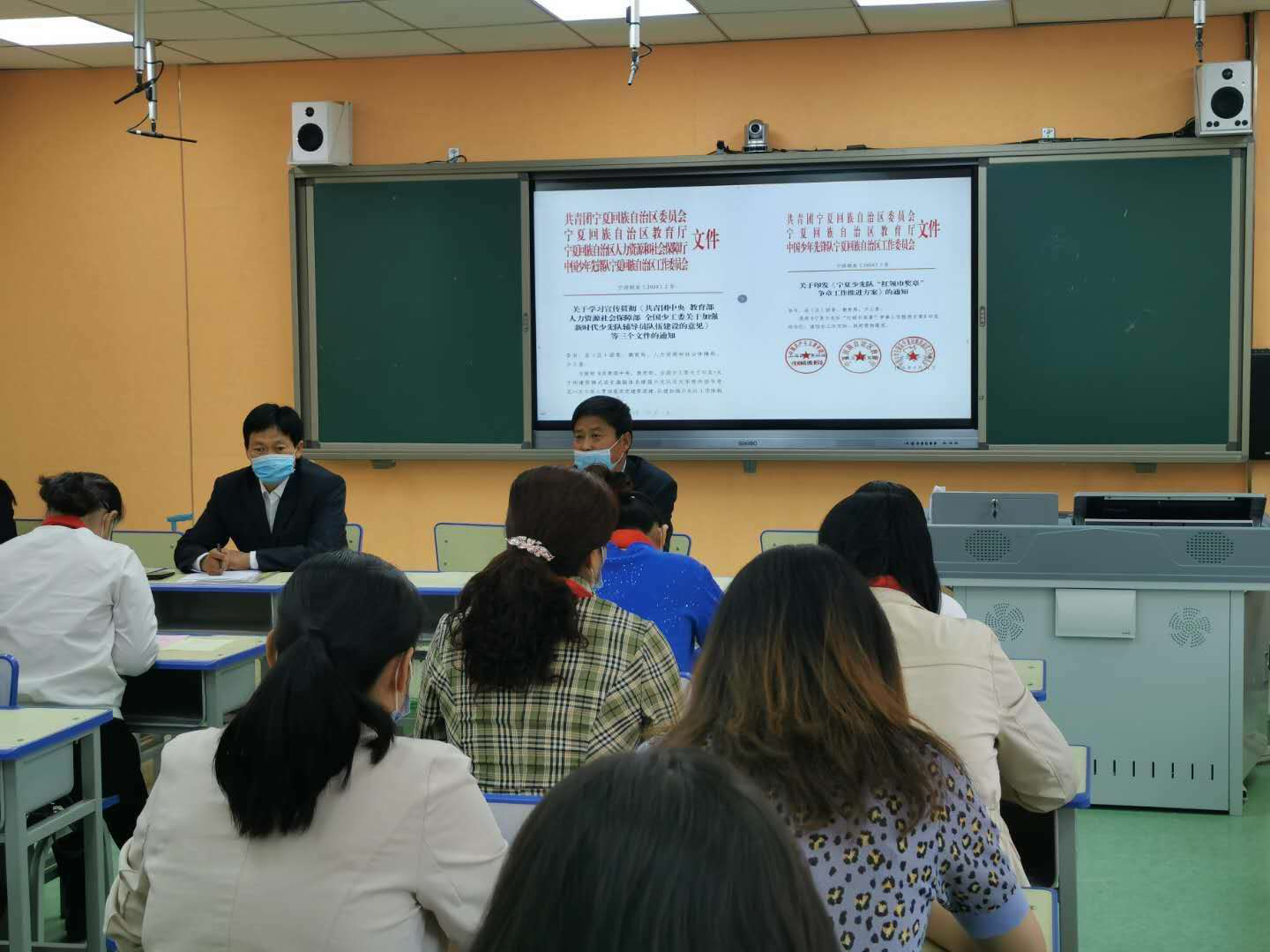 开学在即,为深入贯彻落实习近平总书记致少先队建队70周年贺信精神,学习宣传共青团中央、教育部、全国少工委等部门联合下发的《关于构建阶梯式成长激励体系 增强少先队员光荣感的指导意见》、《关于深入贯彻落实党建带团建、队建 加强少先队工作体制机制建设的意见》、《关于加强新时代少先队辅导员队伍建设的意见》三个少先队工作制度性文件精神,以及学校“红领巾奖章”争章工作和学校微善之家积分超市正常运行,5月21日,平罗县城关二小召开微善之家积分超市试运行暨“红领巾奖章”争章工作推进会。微善之家管理员王老师就积分超市试运行结合红领巾奖章争章工作向辅导员做详细介绍。
